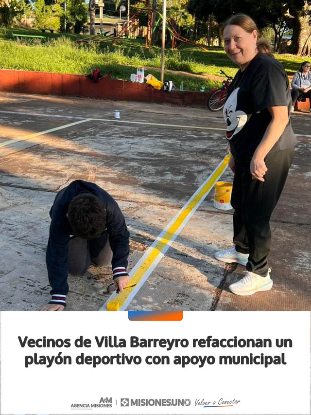 En el barrio Villa Barreyro de Oberá, vecinos llevan adelante la refacción de un playón deportivo con el acompañamiento del municipio, en una iniciativa orientada a recuperar un espacio de encuentro y recreación.