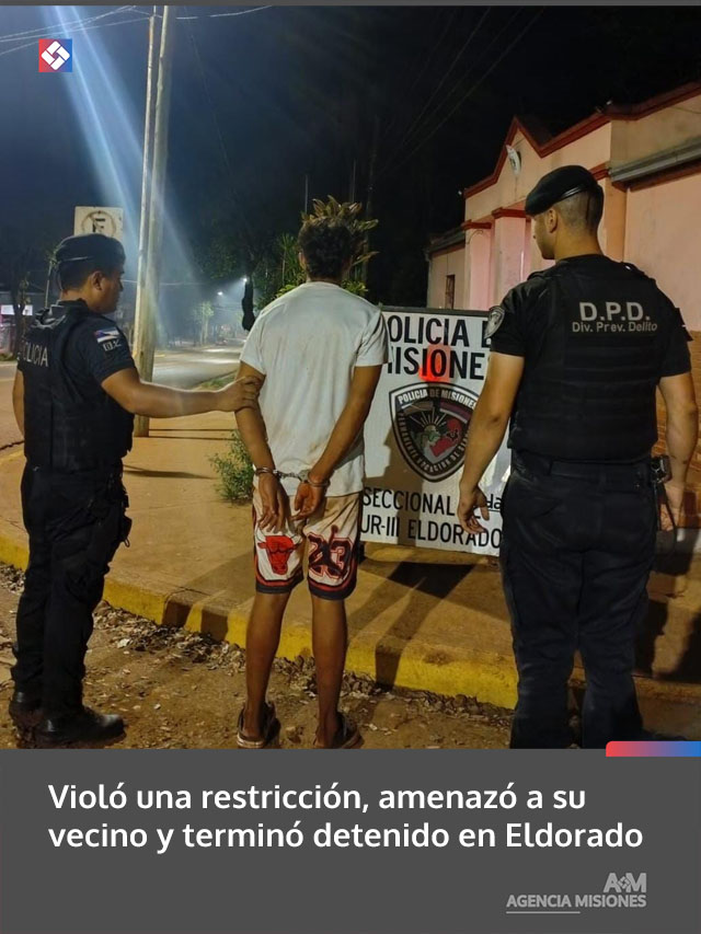 AGENCIA MISIONES.UNO | Un joven de 18 años fue detenido en el barrio Elena III de Eldorado tras incumplir nuevamente una orden de restricción y amenazar a su vecino. El implicado contaba con un pedido de detención vigente por reiteradas desobediencias a medidas judiciales.