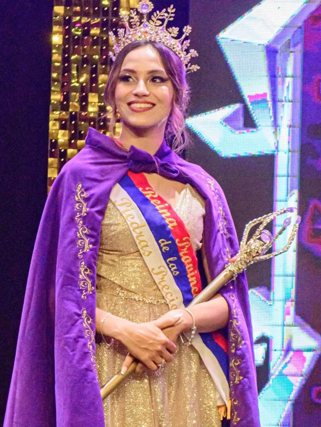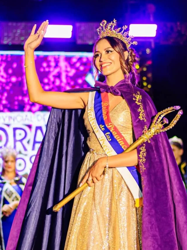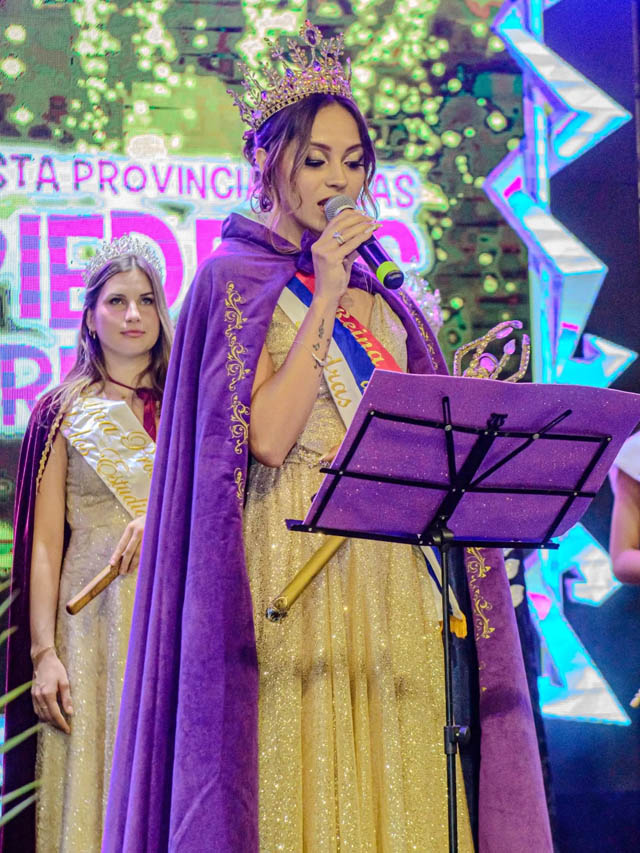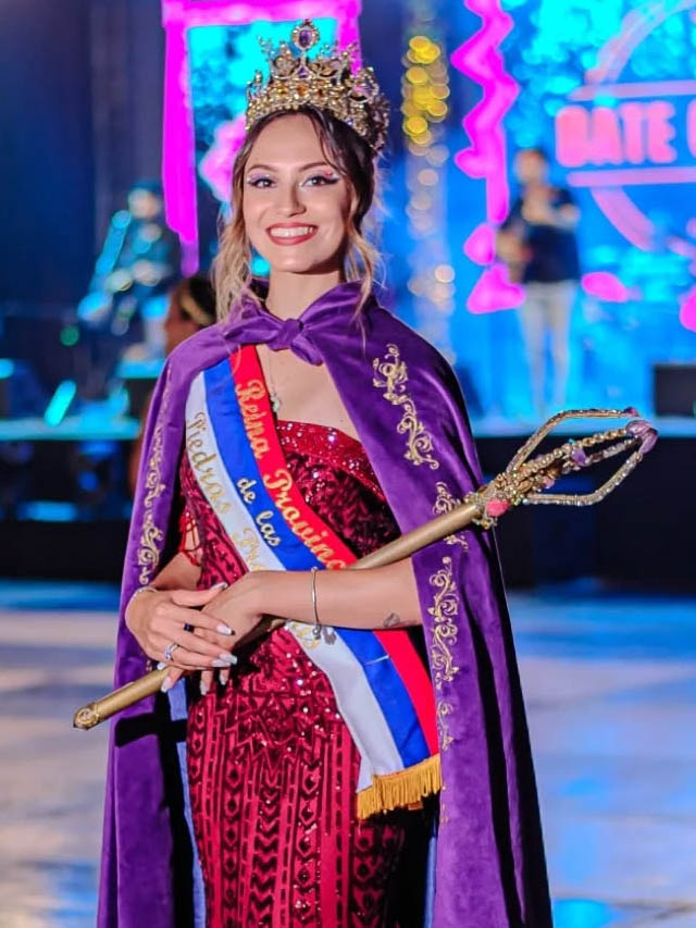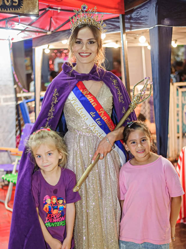 Durante el acto de traspaso, la soberana saliente entregó los atributos a Agustina Dávalos, quien asumió como nueva Reina Provincial de las Piedras Preciosas. El momento estuvo marcado por el reconocimiento a la labor realizada por Emilce a lo largo de su gestión como embajadora cultural de la ciudad.