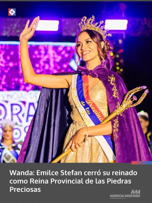 AGENCIA MISIONES.UNO | Tras un año de representación institucional, Emilce Stefan culminó su mandato como Reina Provincial de las Piedras Preciosas y entregó los atributos a su sucesora en una emotiva ceremonia en Wanda.
