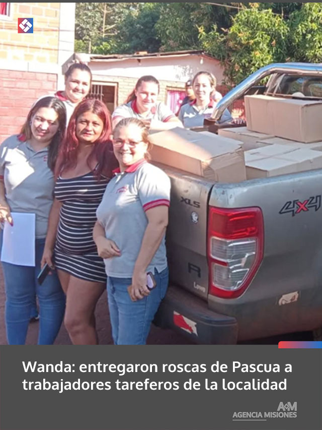 AGENCIA MISIONES.UNO | La Municipalidad de Wanda, a través del Área de Acción Social y el CIC, realizó la entrega de 150 roscas de Pascua a la Asociación de Tareferos “Siempre Unidos”, en el marco de gestiones articuladas con el Ministerio de Desarrollo Social.