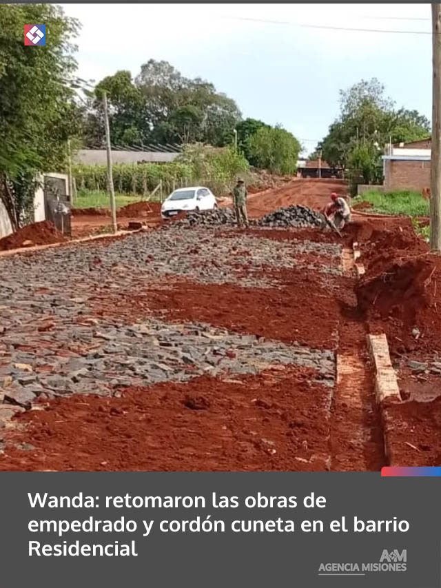 AGENCIA MISIONES.UNO | La Municipalidad de Wanda reanudó los trabajos de empedrado y construcción de cordón cuneta en el barrio Residencial, con el objetivo de mejorar la transitabilidad y la seguridad vial en la zona.